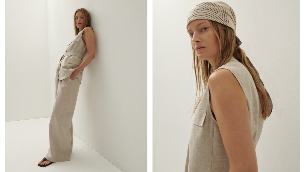 Materijali su prirodni i lagani: pamuk, prozračne lanene mješavine, pletenina bez rukava i meko padajuće tkanine. Čokoladno smeđa isprepliće se s bež i bijelim tonovima. Siluete se otvaraju – funkcionalni prsluci, lagani kaputi, široke hlače ravnog kroja, opušteni kompleti te jeans.